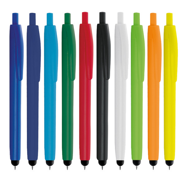 penna sfera a scatto in materiale plastico antiurto, punta touch in colore contrasto, ampio spazio per la personalizzazione. Refil: nero