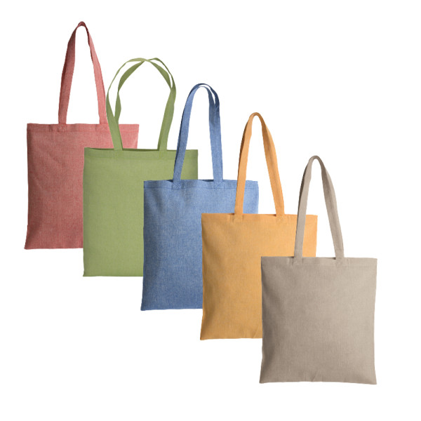 made of 100% recycled cotton with melange effect, long handles, wide space for imprint