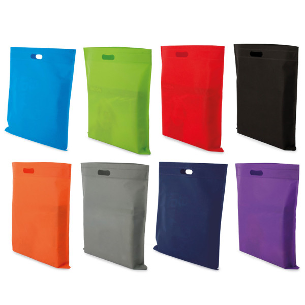comfortable and capacious bag in TNT with integrated handle, wide surface for customization.