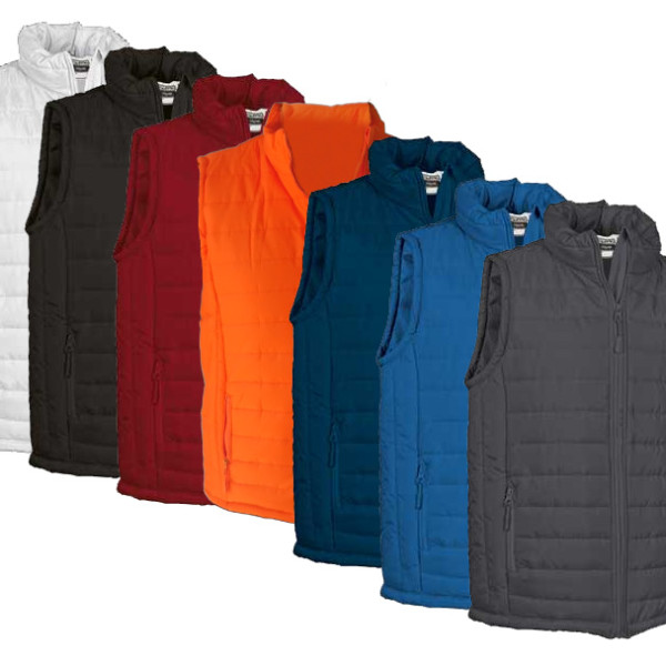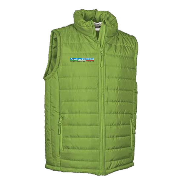 modern padded waistcoat, new Loft fabric, light and thermal insulated by canals, high collar with chin guard, adjustable waist with elastic cord, 2 front pockets with zip closure, 1 inside pocket