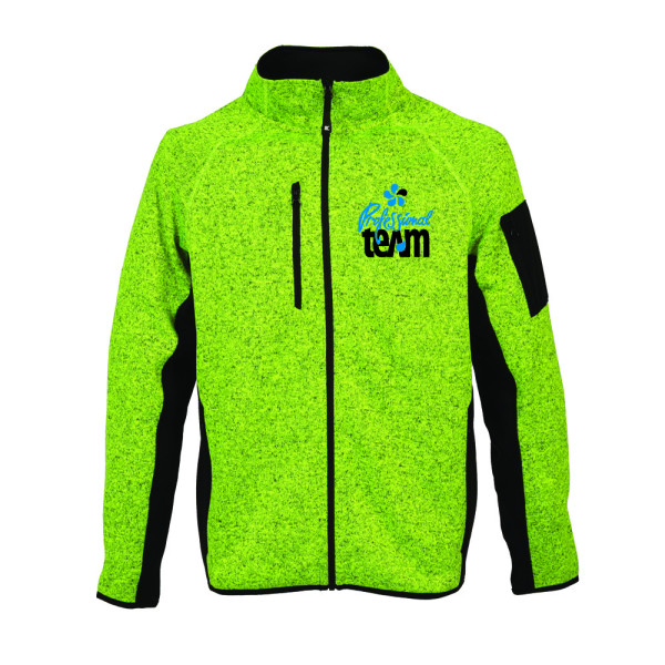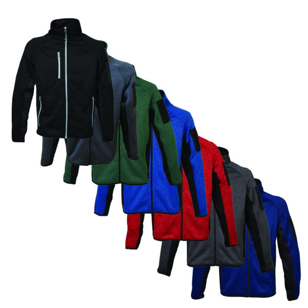comfortable knitted jacket with internal brushing, stretch fabric inserts on the sides, under the arms and inside the collar, side, chest and arm pockets closed with zip, cuffs and bottom in elastic fabric. long zip closure. packaged in a single bag.