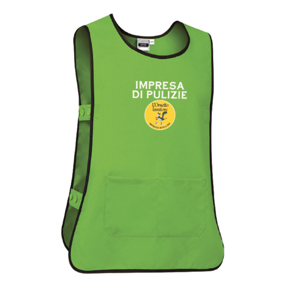 comfortable 100% polyester 180 g jacket. Wide crew neck edged in black. Adjustable side elastic bands with buttons in 3 positions. 1 lower front pocket divided into two. Individually wrapped Sizes: M/L XL/XXL