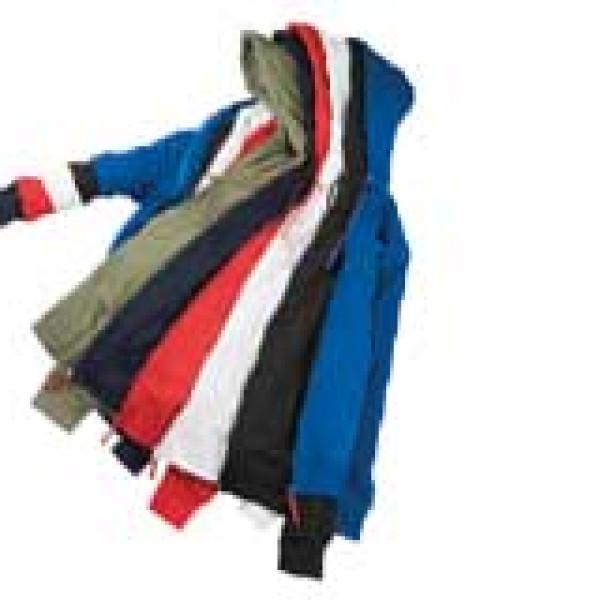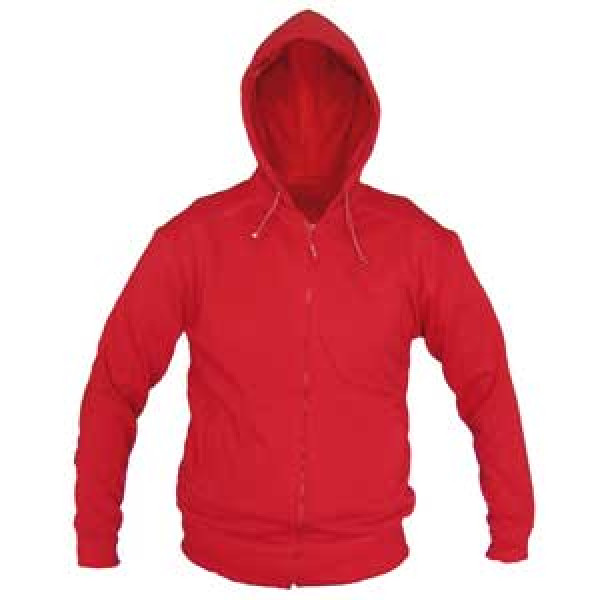 working jersey outside, plushy inside, 65% cotton 35% polyester, elastame cuffs and waist, long metal zip, 2 lateral pockets, hood with coulisse.