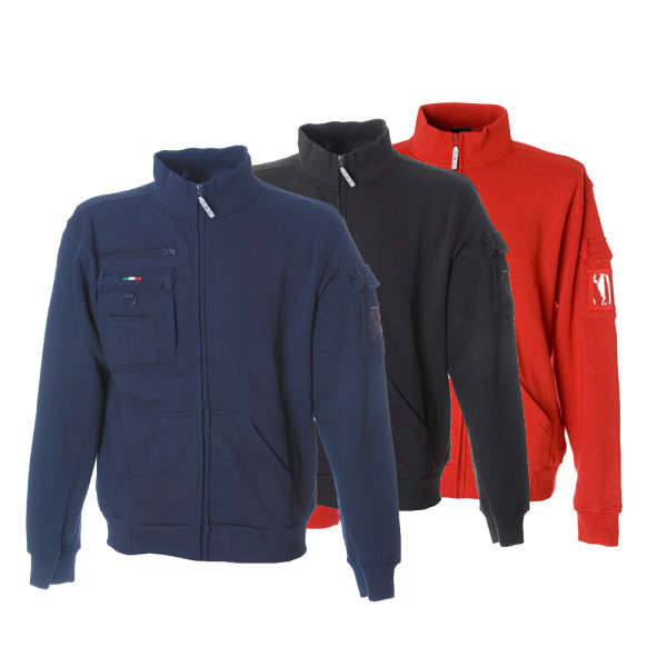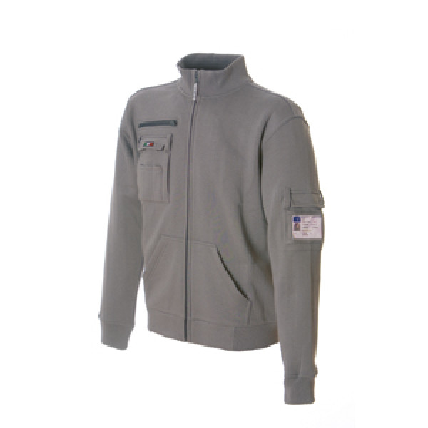 COTTON/POLYESTER SWEATSHIRT, LONG ZIP, HIGH NECK WITH RIBBON REINFORCEMENT, COVERED LONG ZIP, 2 LATERAL POCKETS, ON THE CHEST: 1 POCKET WITH ZIP, 3 PEN HOLDER, 1 POCKET WITH VELCRO AND ITALIAN FLAC EMBOIDERY. RIBBON WITH HOOK. ON THE ARM 1 POCKET WITH VEKCRI AND PORTABADGE, ELASTICIZED CUFFS AND BOTTOM.