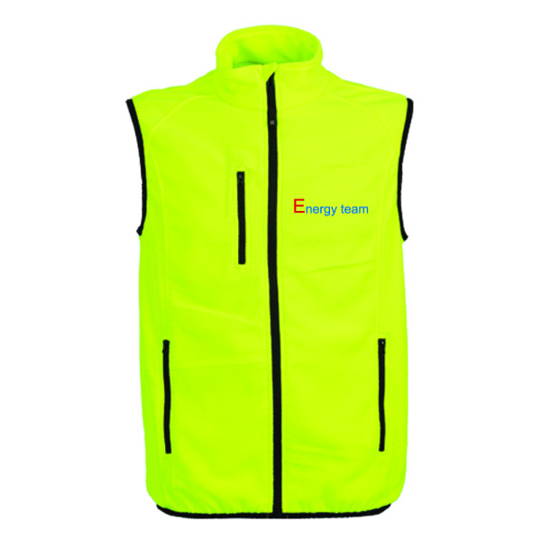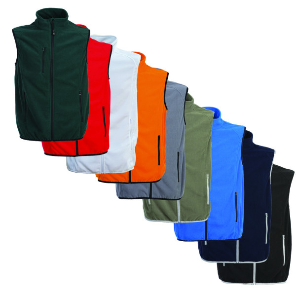 comfortable anti-pilling microfleece vest, high collar, taped zips, zip pocket on the chest, 2 zip pockets, elasticated fabric at the waist and armholes. Long zip closure. Packaged in a single bag