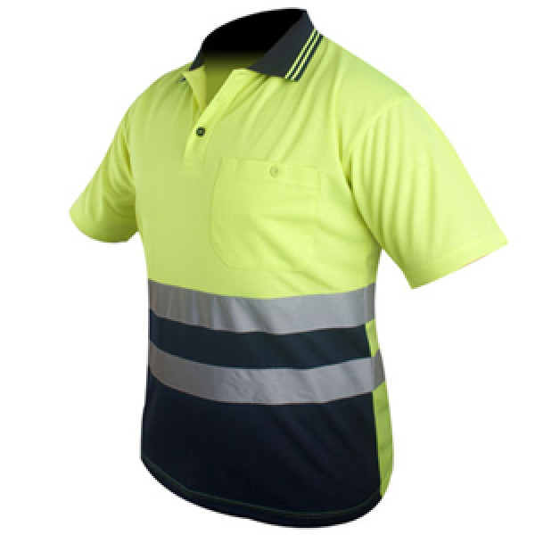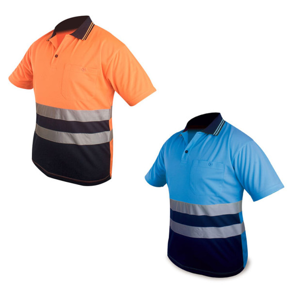 SHORT SLEEVE, UNSHRINKABLE, MIXED COTTON, 160 gr, HIGH WEARABILITY, LITTLE POCKET CLOSED WITH BUTTON, WAIST WITH REFLECTIVE TAPE LIKE THE EUROPEAN LAW EN471, NECK AND WAIST CONTRAST COLOUR, TWO NEEDLES HEM SHOULDER, COLLARETTE, SLEEVE AND BOTTOM. WRAPPED IN SINGLE ENVELOPE.