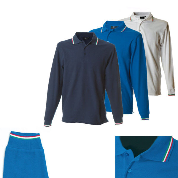 100% COTTON 210 gr, UNSHRINKABLE, LONG SLEEVE, ELASTICIZED COLLARETTE AND CUFFS WITH ITALIAN FLAG, TWO NEEDLES HEM SHOULDER, COLLARETTE, SLEEVE AND BOTTOM. WRAPPED IN SINGLE ENVELOPE.