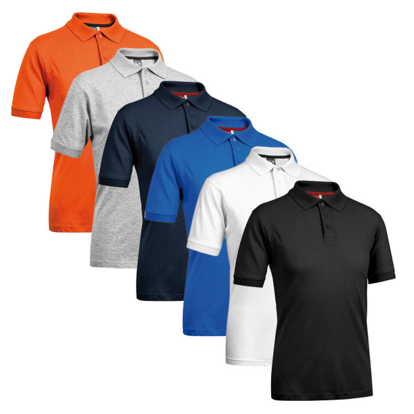 comfortable, short-sleeve ,cotton jersey 200 gr, collar and cuffs in rib with double pipping in contrast color, reinforced seams.