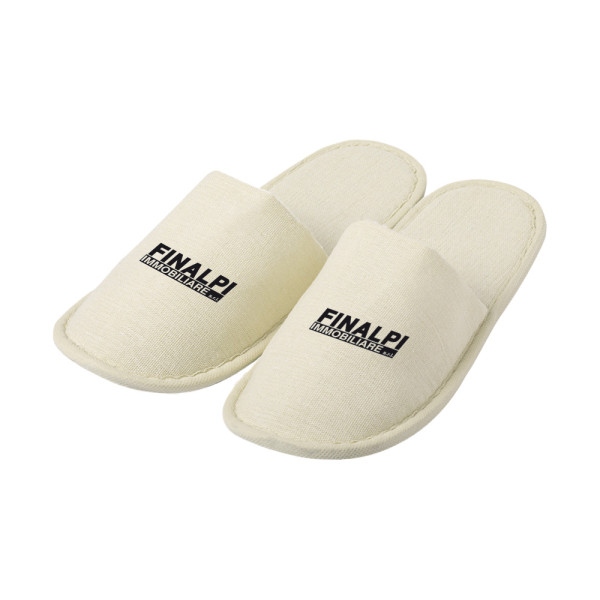 COUPLE OF SPONGE SLIPPERS, OPEN, CLOTH THAT CAN BE EASY EMBROIDERED. RUBBER ANTI-SLIP SOLE.