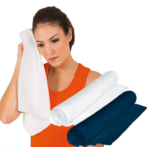 Microfibre towel, ideal for sports and promotional use. Colors white, black, blue