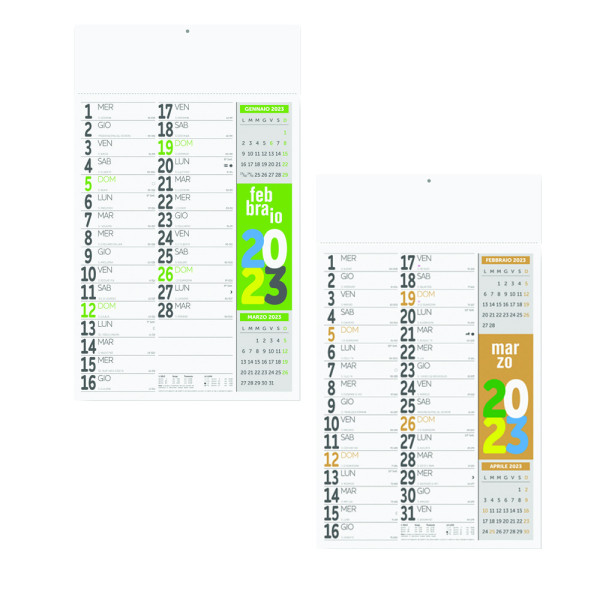triptych with 12 sheets printed in four colors on coated cardboard, packaged with a patented header.