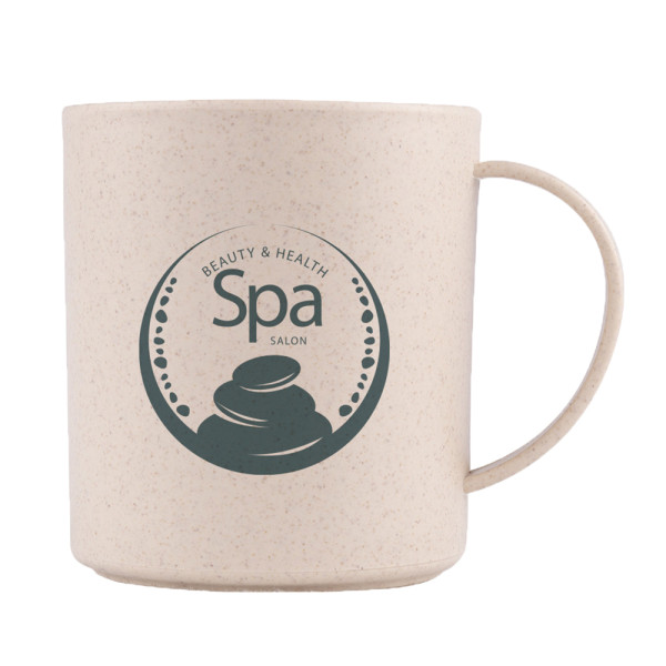 ecological mug in bamboo fiber, 350ml capacity, large space for personalization, dishwasher safe