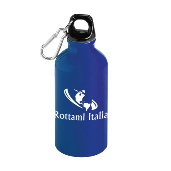 convenient and reusable with 500ml capacity, screw-on safety cap and metal snap hook, wide surface for imrpint. Packaged in a single box