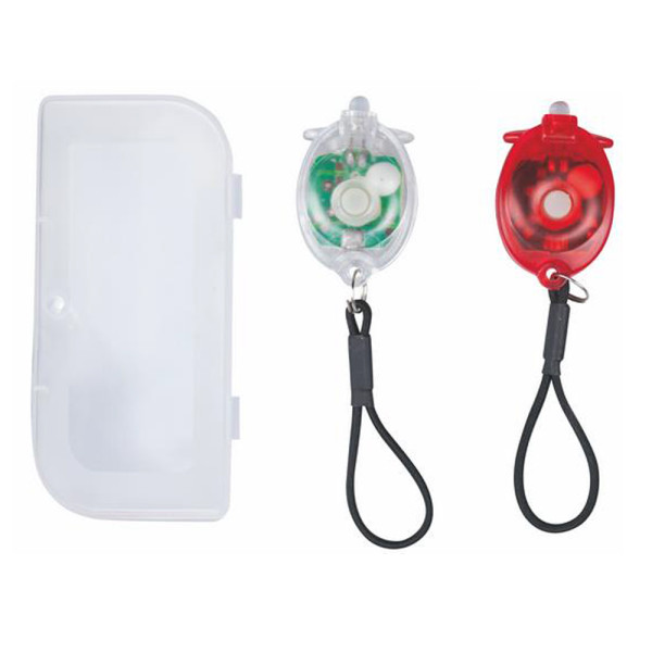 intermittently torch 1 with red light and 1 with white light, 3 light modes, ample space for customization on the box in shockproof material, closure pouch with magnet