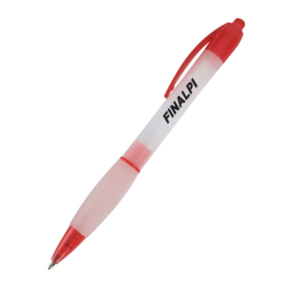 RETRACTABLE BALL POINT PEN, ERGONOMIC GRIP WITH WHITE ANTI-SLIP RUBBER, TRANSLUCENT STEM, COLORED DETAILS. REFIL: BLUE