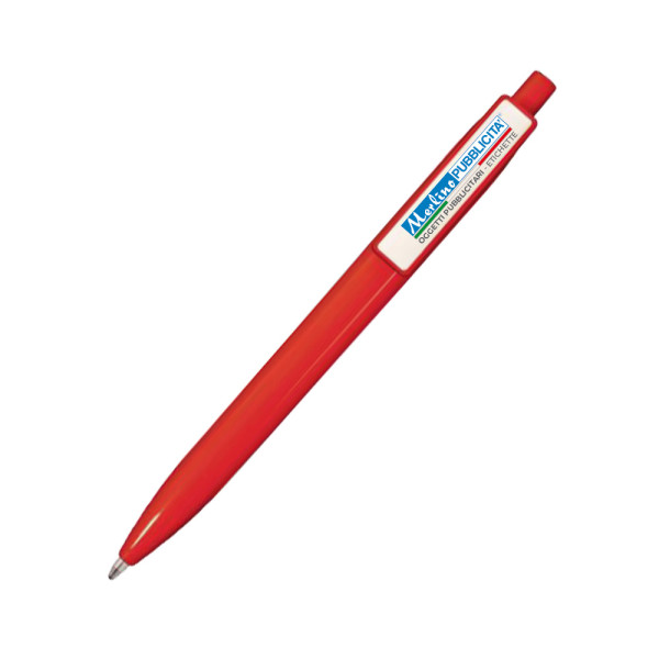 RETRACTABLE BALL POINT PEN, COLORED ROUND STEM, CLIP WITH WHITE DETAILS, POSSIBILITY TO PERSONALIZE THE CLIP WITH PRINTING DOMING IN FULL COLOR.REFIL: BLUE
