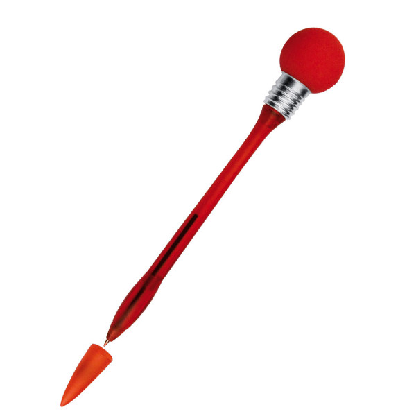 BALL POINT PEN WITH CAP, STRENGTHENED TIP, PLASTIC BALL ON THE TOP THAT INTERMITTENCY LIGHT UP IF YOU HIT IT. 3 BOTTON BATTERY INCLUDED, CERTIFICATION E196. REFIL: BLACK, GIANT