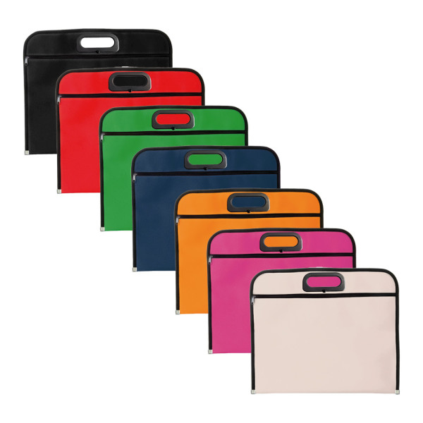 elegant folder document holder, Cordura 600D polyester, trim color contrast, shockproof plastic coated handle, pocket with zip, wide surface for imprint.
