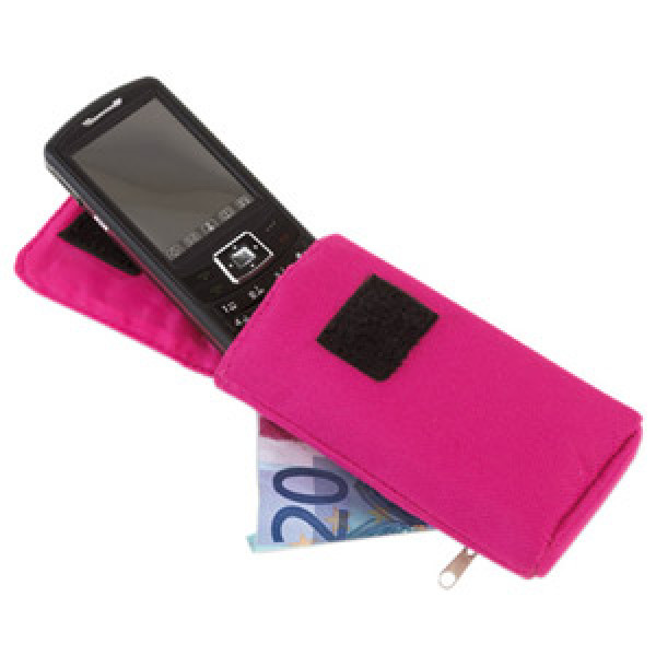 LITTLE POCKET PHONE HOLDER, WITH VELCRO AND SNAPLINK, POCKET WITH ZIP AND BELT LOOP ON THE BACKSIDE.