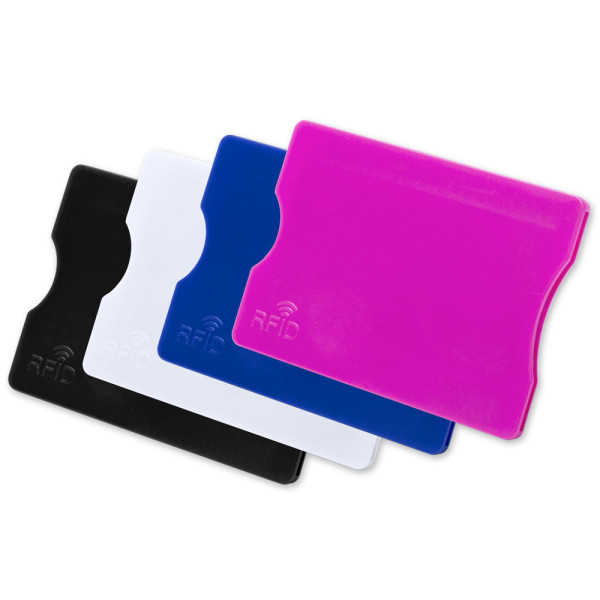 protective case stops the theft of data from credit card, identity card and other cards, in shock-resistant plastic, wide surface for customization
