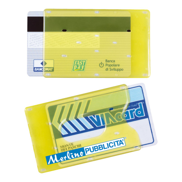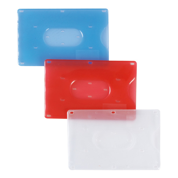 card holder, shockproof plastic with colored window for easy positioning, wide surface for impreint.
