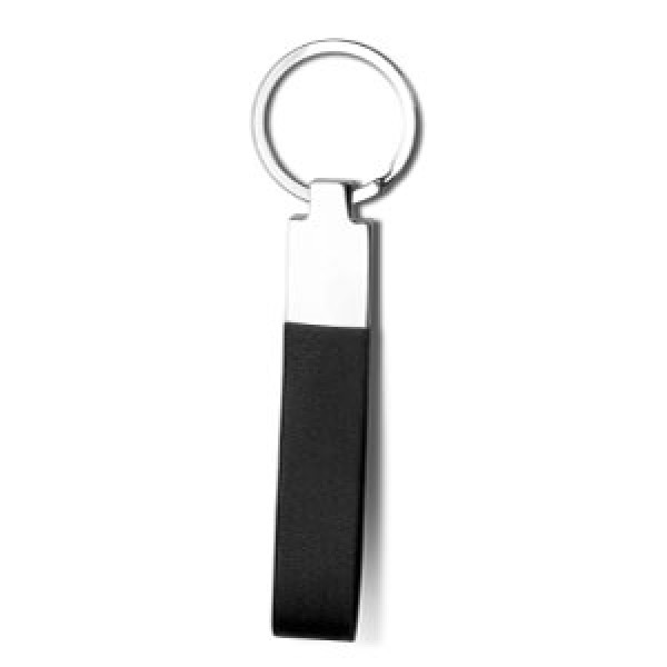 ÉLÉGANT PORTE CLEFS, DESIGN ESSENTIEL, EN MÉTAL CHROMÉ ET CUIR, AVEC ANNEAU EN ACIER, CONFECTIONNÉ DANS UN ÉLÉGANT ÉTUI VELOUTÉ