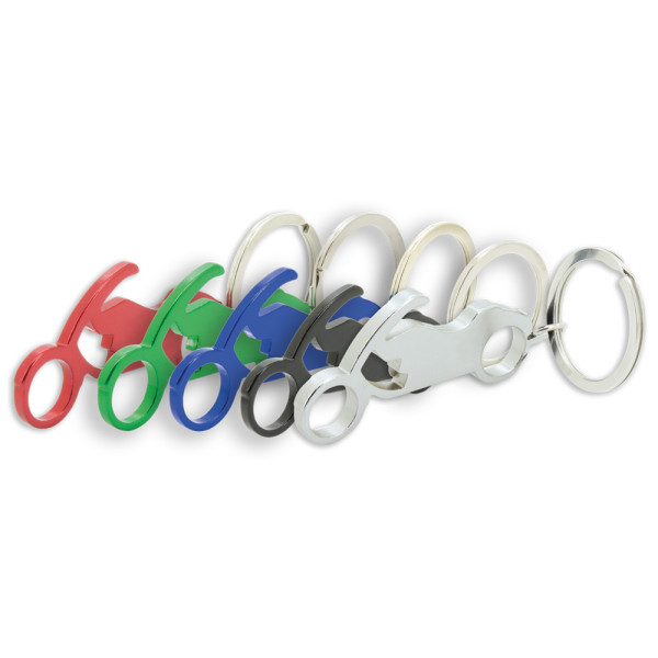 EN ALUMINIUM COLORÉ EN FORME DE MOTO, ANNEAU BRISÉ.