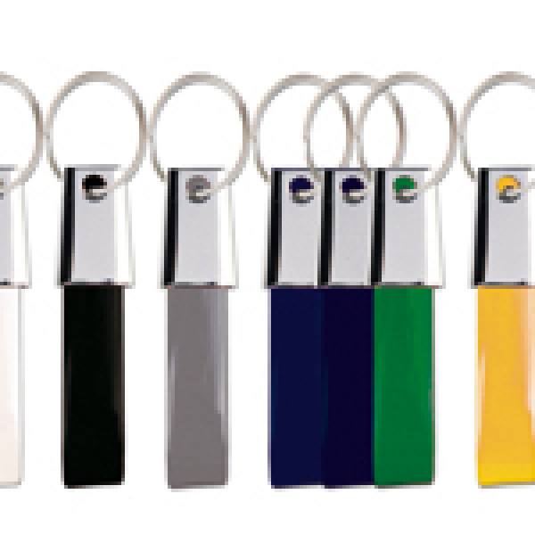 porte clefs elegante en peinture et mètal chromée ou on peut appliquée une étiquette resian, anneau brisè en acier, ample surface pour l’impression
