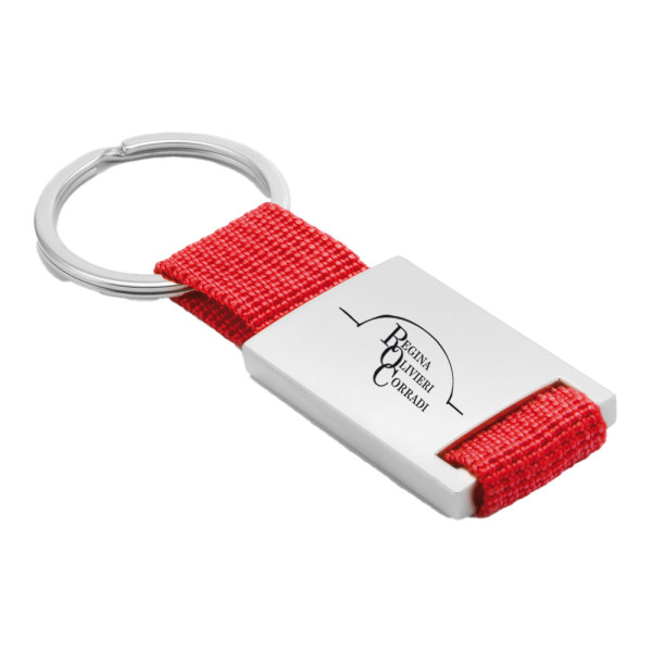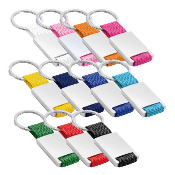design moderne pour le porte-clés en métal et cordura, anneau brisè, grand espace pour la personnalisation. Couleurs assorties