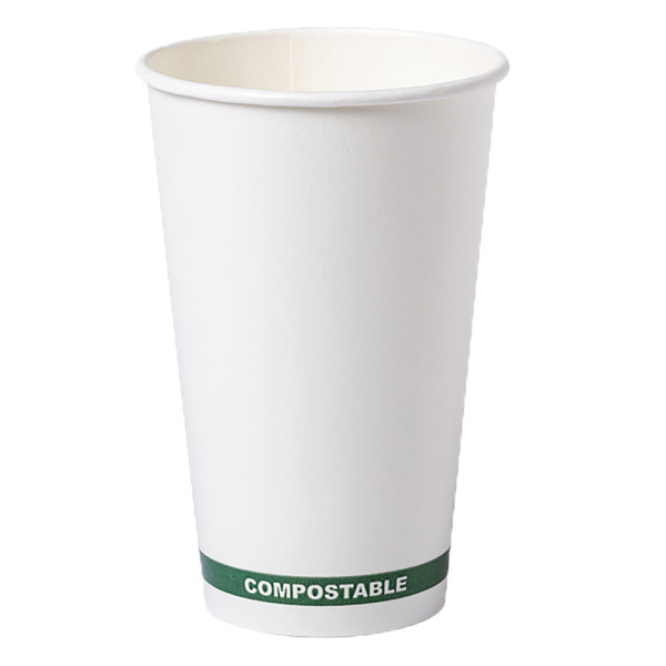 verre à simple paroi en papier PLA 100% compostable, capacité de 500 ml, ample espace pour la personnalisation. Couleurs: écru, blanc