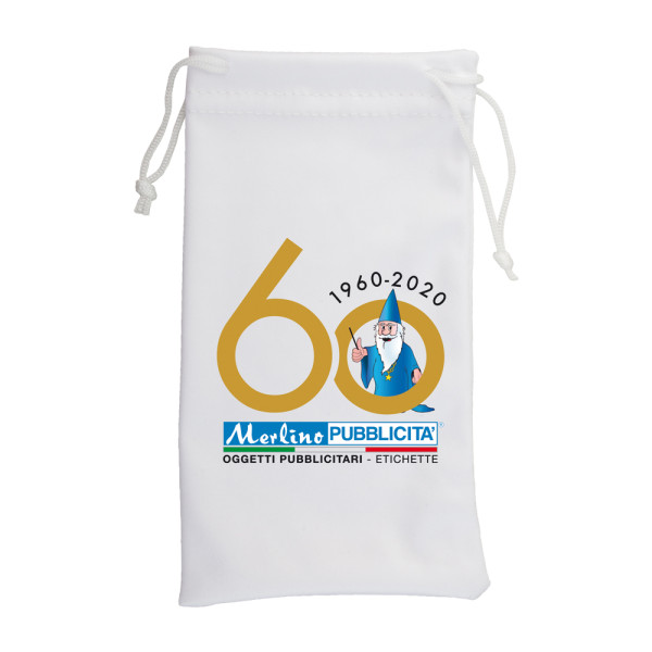 étui à lunettes pratique en microfibre, fermeture à cordon, ample espace pour la personnalisation en quatre couleurs.