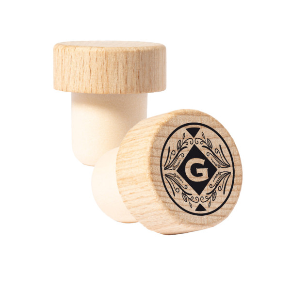 Bouchon de bouteille réutilisable avec dessus en bois naturel et fond hermétique. Beaucoup de place pour la personnalisation.