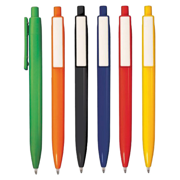 STYLO À BILLE À DÉCLENCHEMENT, CORP ROND DE COULEUR, CLIP AVEC DETAILS BLANCHES, CLIP PERSONNALISABLE AVEC L'IMPRESSION EN 4 COULEURS. REFIL: BLEU