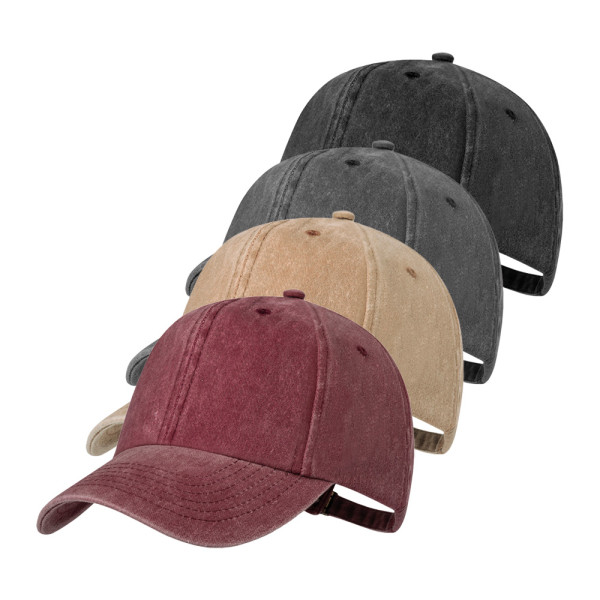 Cappellino a 6 pannelli con finiture effetto lavato. realizzato in morbido cotone 100%. chiusura posteriore con fibbia metallica regolabile, disponibile in un ampia gamma di colori
