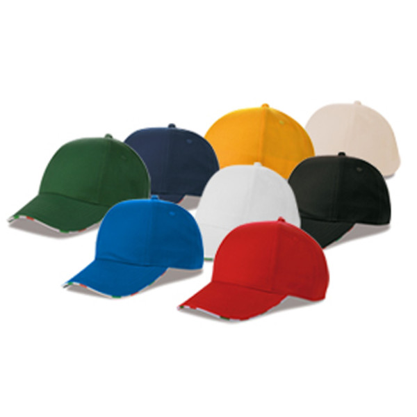 IN DOPPIO COTONE 6 PANNELLI, INTERNO RIVESTITO ED IMBOTTITO, TESSUTO RIGIDO CHE SI PRESTA AL RICAMO, VISIERA MULTISTRATO PRECURVATA CON INSERITO IL TRICOLORE. REGOLATORE DI TAGLIA IN VELCRO CON RICAMATA LA BANDIERA ITALIANA.