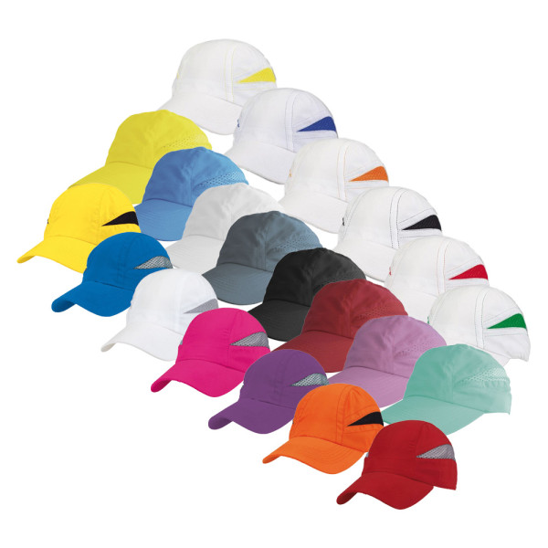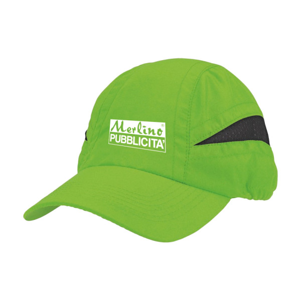 CAPPELLINO IN MICROFIBRA CON INSERTI IN MESH COLORE CONTRASTO SUI LATERALI, VISIERA PRECURVATA, MATERIALE TRASPIRANTE ADATTO ALLO SPORT. TAGLIA UNICA CON REGOLATORE.