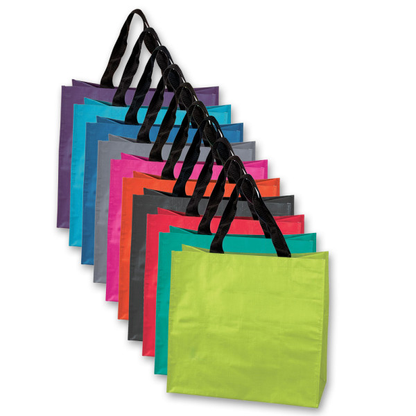 COMODA BORSA IN TNT LAMINATO TRAMA TESSUTO, IMPUGNATURA COLORE CONTRASTO IN CORDURA DI NYLON CUCITA, AMPIO SPAZIO PER LA PERSONALIZZAZIONE