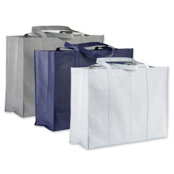 Shopper maxi in TNT 100gr cucito con manici lunghi e soffietto Ampio spazio per la personalizzazione