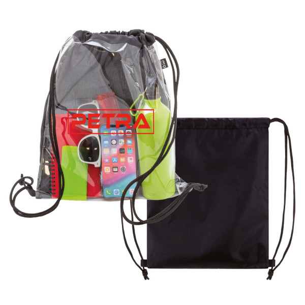 Borsa/ zaino con chiusura a coulisse con 1 lato trasparente, ottimale per grandi eventi. Ampio spazio per la personalizzazione