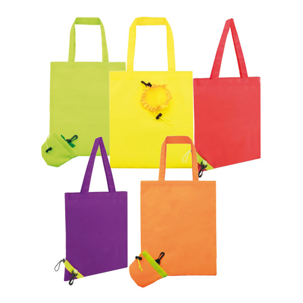 colorata, pratica e ripiegabile in varie forme: carota, fragola, banana, uva etc, in resistente poliestere 190D, rifiniture accurate e doppie cuciture, ampio spazio per la personalizzazione