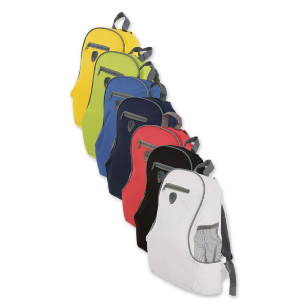 spallacci imbottiti regolabili, 2 tasche ai lati in retina, profili in colore contrasto.