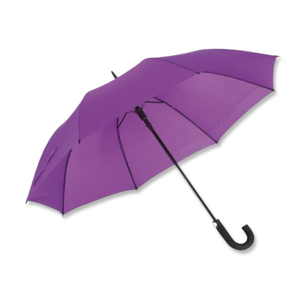 automatico in resistente poliestere 190D con rivestimento particolarmente repellente all’acqua, stecca nera in metallo, pulsante d’apertura satinato argento, impugnatura ergonomica in materiale antisdrucciolo, ampio spazio per la personalizzazione