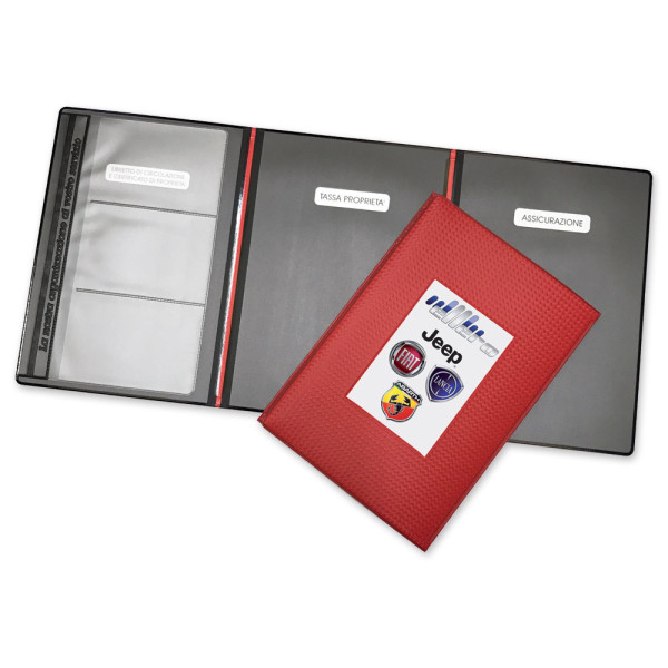 realizzato in gommato Carbonio, patellina interna per 3 card, 3 buste interne portadocumenti.