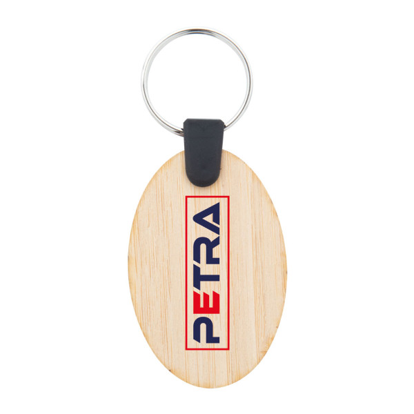 design moderno per il p.chiave in bamboo sagomato naturale, anello brisè, ampio spazio per la personalizzazione Formato ovale: cm 3,5x5,3 Formato rettangolare: cm 3,5x5,3 Formato gettone: cm 7,3x2,3