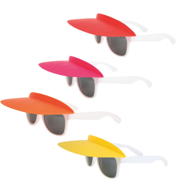 occhiale dal design classico comprensivo di visiera incorporata che funge anche da riparo per le lenti con con protezione UV400. ARTICOLO IN STOCK FORNITO SOLO IN COLORI ASSORTITI/DISPONIBILI