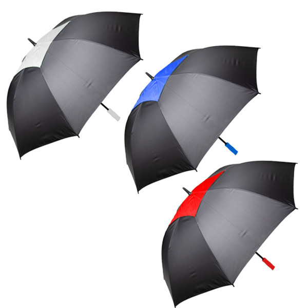 di sicuro impatto, ombrello di taglia extra large, con 8 pannelli, struttura antivento in fibra di vetro, comoda impugnatura in EVA in colore abbinato al pannello antivento, in poliestere 190T, ampio spazio per la personalizzazione Colori: argento, rosso, blu, verde