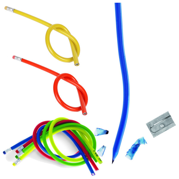 ORIGINALE MATITA DA DISEGNO FLESSIBILE, DAI COLORI BRILLANTI, TEMPERABILE COME UNA NORMALE MATITA, COMPLETA DI GOMMINA ALL'ESTREMITA'.