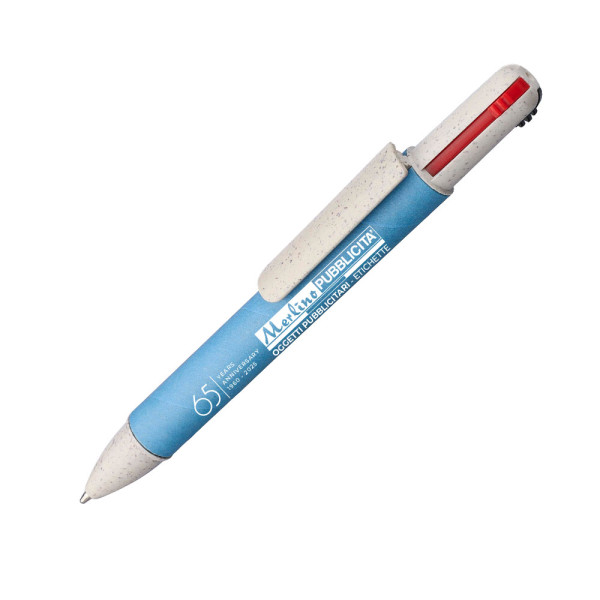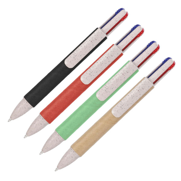 Penna a sfera in cartone riciclato e paglia di grano a 4 colori, lunghezza di scrittura di circa 300 metri per colore, Refil: blu, nero, rosso e verde