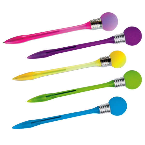 PENNA SFERA CON TAPPO, PUNTALE RINFORZATO, PALLINA IN PLASTICA SULLA PARTE SUPERIORE CHE SI ILLUMINA AD INTERMITTENZA SE SI COLPISCE, 3 PILE BOTTONE INCLUSE. CERTIFICAZIONE E196. REFIL: NERO