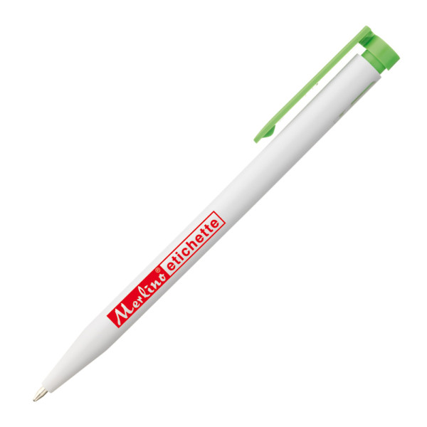 Penna a sfera ecologica realizzata con l'85% di ABS riciclato post-consumo proveniente da elettrodomestici, fusto grigio, particolari colorati, ampio spazio per la personalizzazione. Colori: verde, rosso, nero, blu Refil: blu